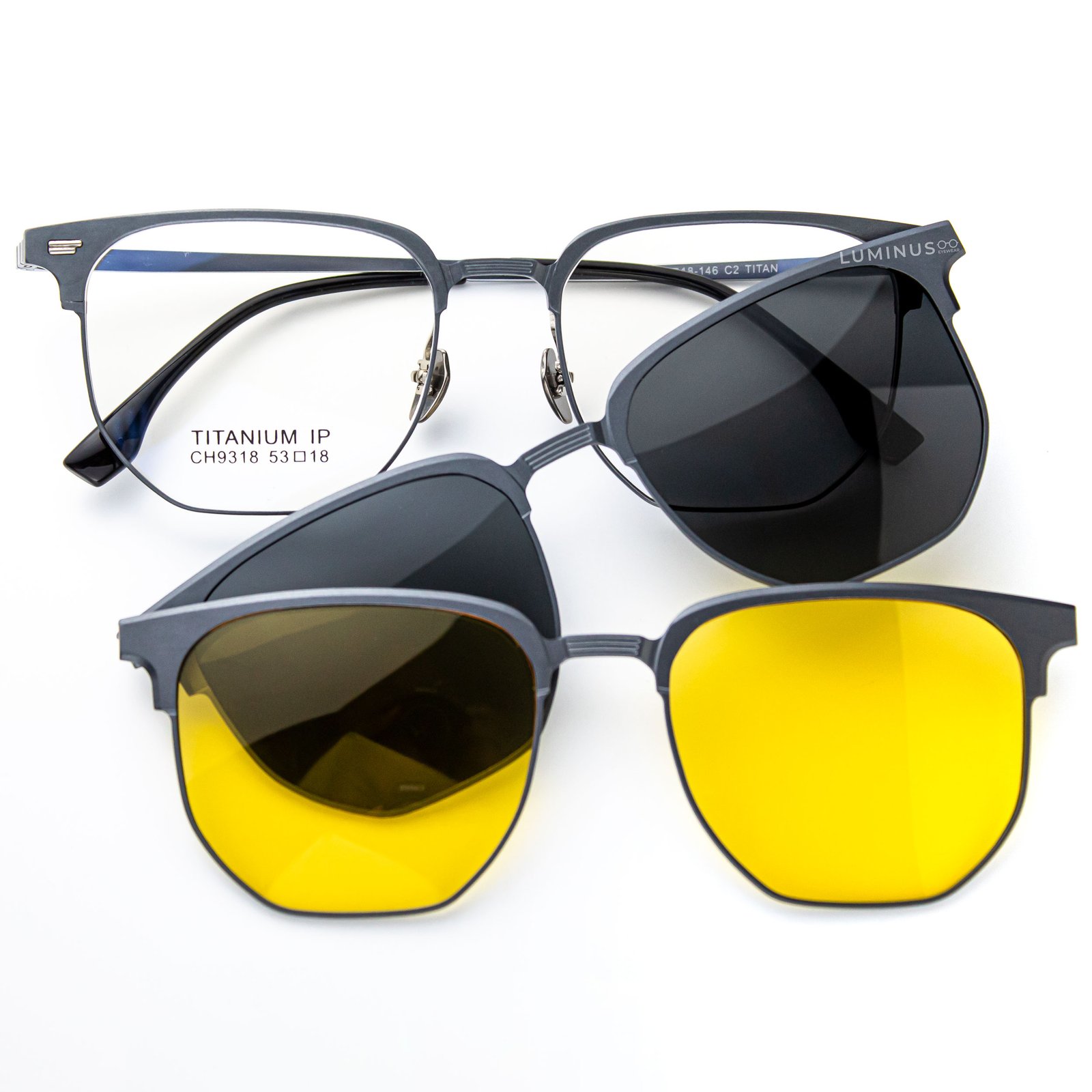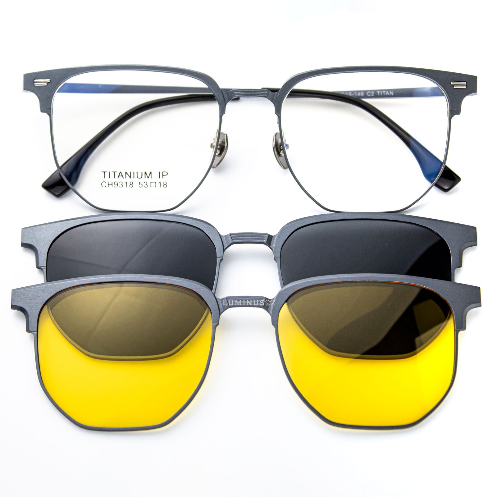 • Peso: 7.3 g. • Estilo de gafas: Retro/Clasico • Material del marco: Aluminio/Magnesio • Material de las Varillas: Titanio • Titanio con dureza extraordinaria • Material ligero, comodo de llevar • Comodas almohadillas de metal para la nariz • Sobrelentes Polarizados y Proteccion UV400 • Sobrelentes se adhieren por atraccion magnetica, no cae facil. • Material de las lunas: TAC (Triacetato de celulosa) • Tipos de rostros: Ovalado, redondo, cuadrado, diamante • Forma del marco: Caja • Incluye estuche de seguridad y limpiador de microfibra • La montura principal se puede realizar a medida/descanso (consultanos).